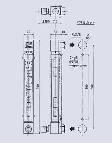 パネル取付用面積流量計(ニードル弁付) 【AP-0250】