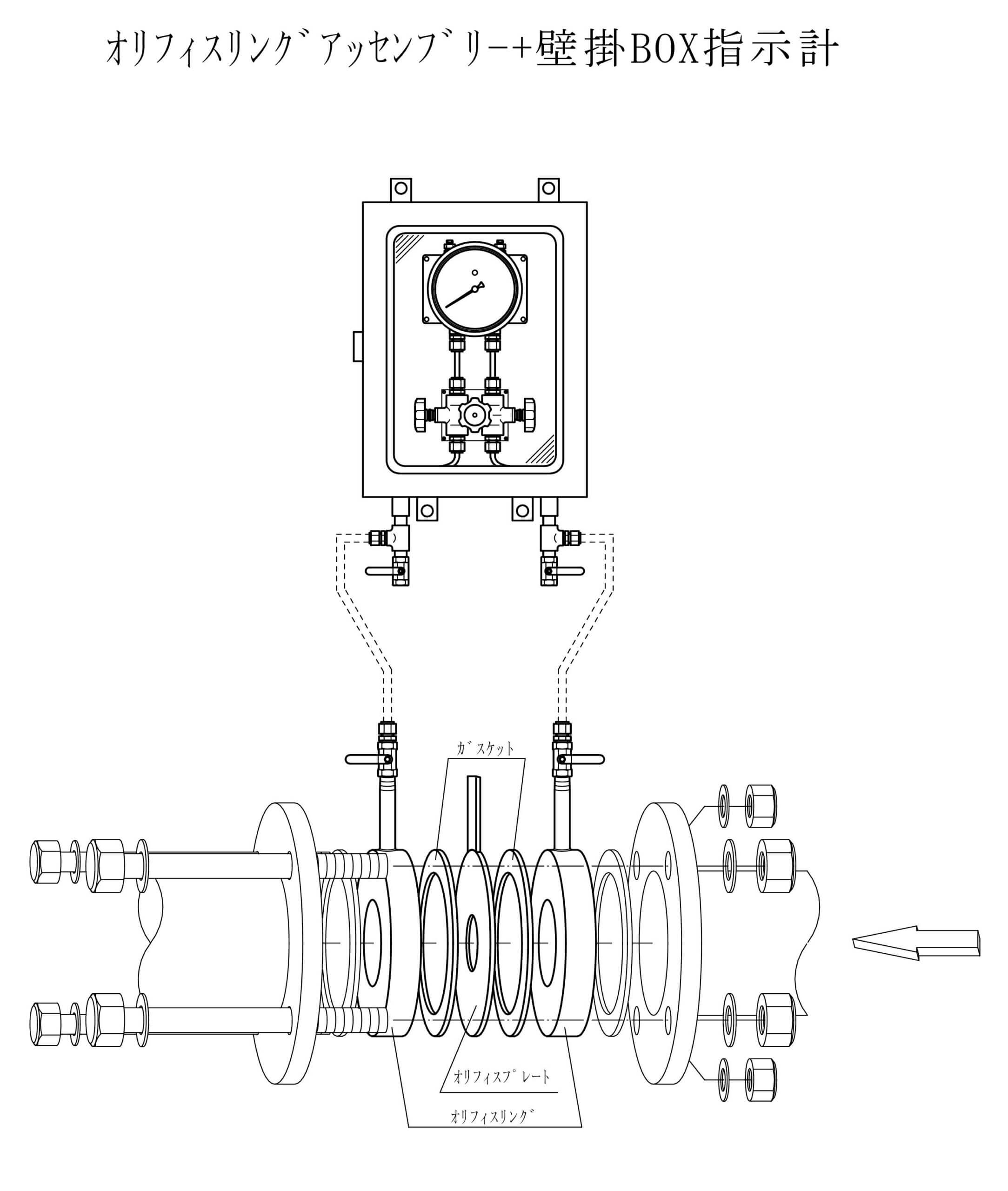 ・差圧検出部(オリフィス)と流量指示部をセットで製作します。